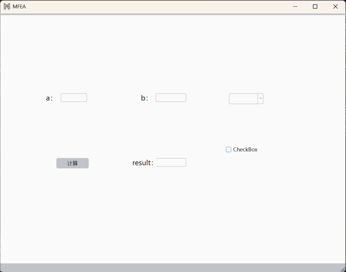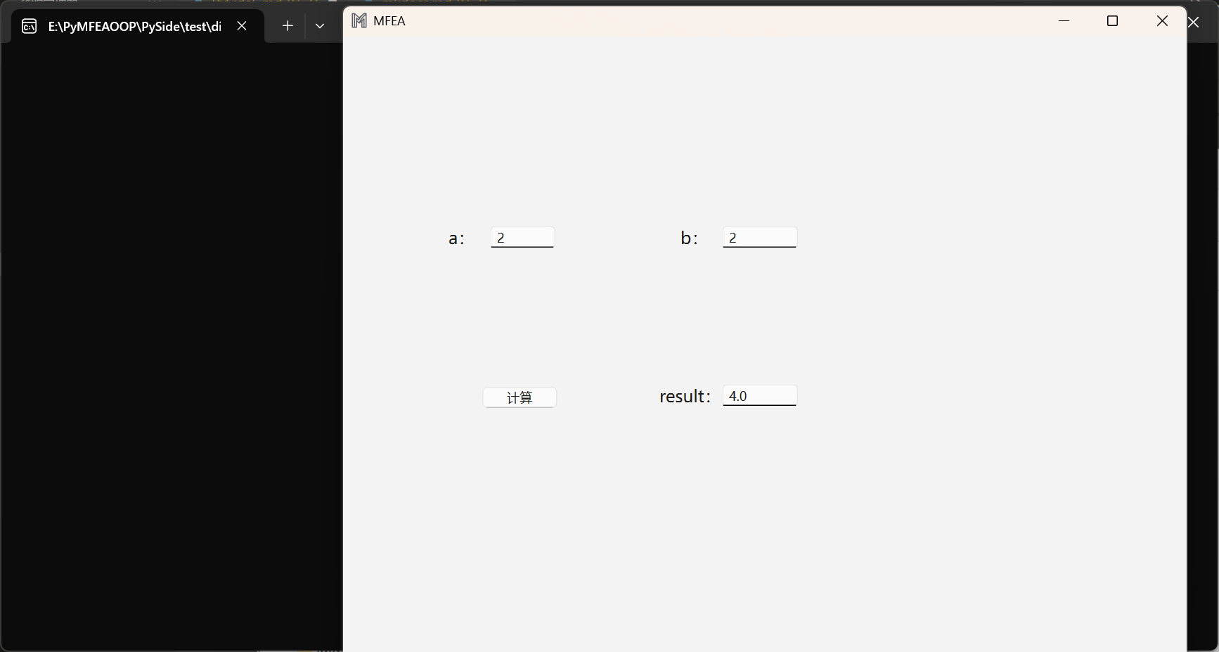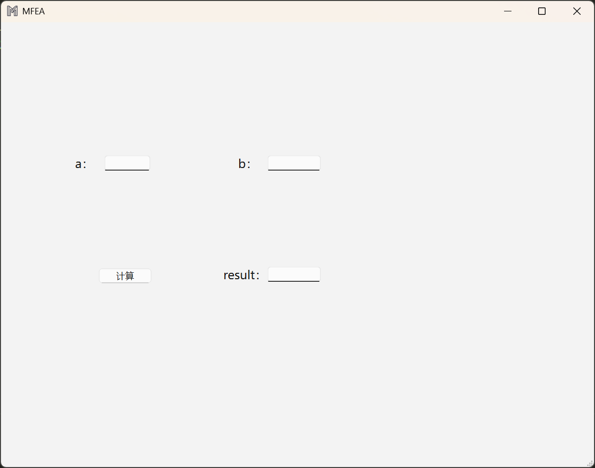 运行程序后,就可以看到刚刚设计好的APP界面,在参数a和参数b输入框中试一下,点击计算,可以顺利完成函数calculate
